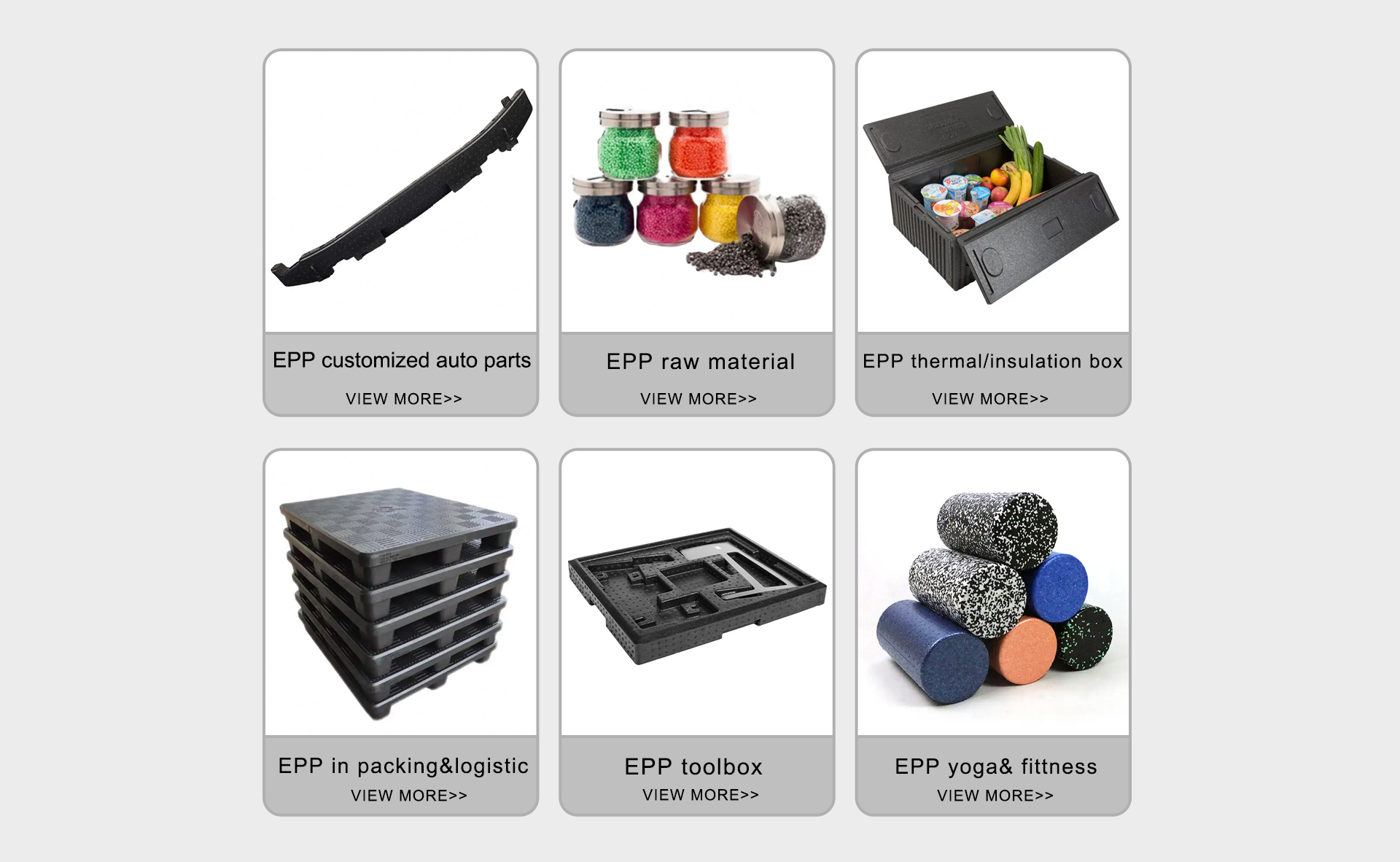 Produk utama: Bahan Mentah EPP, cetakan EPP, bagian cetakan EPP, pengemasan EPP, bantalan EPP
